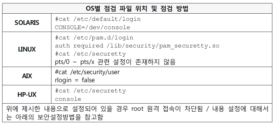 위 명령을 수행하는 이유는, 한국인터넷진흥원에서 권고한 주요정보통신기반시설 기술적 취약점 분석평가 상세 가이드로서 리눅스 체계에 대한 root 계정 원격 접속을 차단하기 위한 조치입니다.