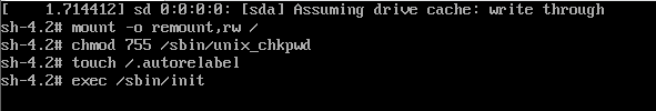 4. 쉘로 진입 후, 현재 읽기 전용으로 마운트 된 상태를 읽기,쓰기 권한으로 다시 마운트 시키는 명령을 입력합니다.