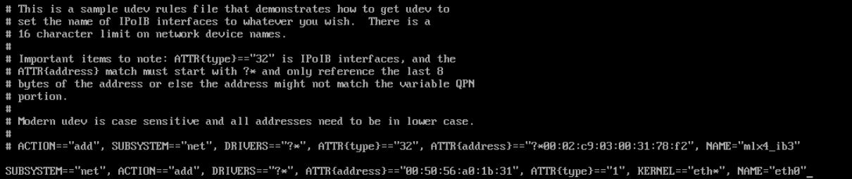 SUBSYSTEM=="net", ACTION=="add", DRIVERS=="?*", ATTR{address}=="00:50:56:a0:1b:31", ATTR{type}=="1", KERNEL=="eth*", NAME="eth0" |